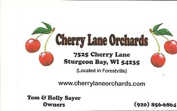 Located in Forestville, Cherry Lane Orchards is on Cherry Lane, two blocks off Hwy 42, five miles south of Hwy 57, and one mile north of Forestville.